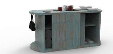 Este mueble tiene como objetivo principal ofrecer un espacio funcional para el almacenamiento de pertenencias personales, al tiempo que brinda una superficie útil para apoyar alimentos o bebidas, favoreciendo la comodidad durante momentos de descanso o socialización. Se empleará como material el tablero marino y acabado desgastado, integrándose armónicamente al entorno y promoviendo una estética cálida, orgánica y sostenible.
