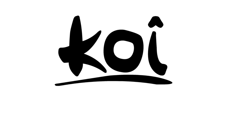 El logotipo utiliza el nombre "Koi", ya que se inspira en las formas curvas de los peces koi y las proyecta en las formas de las piezas cerámicas, producto al cual va dirigido este logotipo.